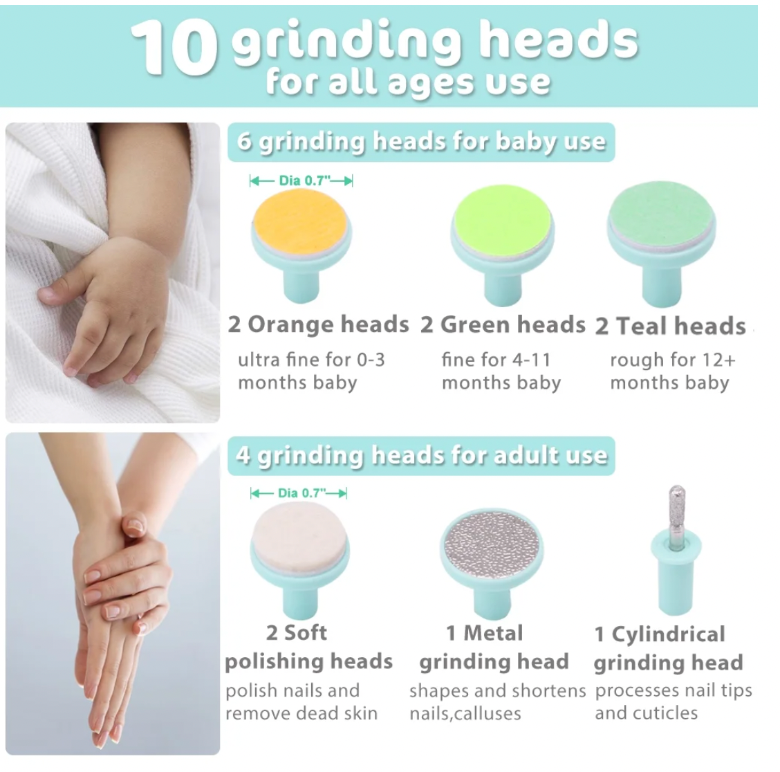 La Cortadora Eléctrica para Bebés y Niños LANNEY ofrece una solución segura y eficiente para el cuidado de las uñas en todas las etapas del crecimiento infantil. Cuenta con 10 cabezas de molienda, incluyendo 6 papeles de lija con diferentes texturas adaptadas para recién nacidos, bebés y niños hasta 12 meses o más. Además, incorpora cabezales de pulido específicos para adultos, permitiendo su uso familiar. Su diseño de un solo botón facilita el control de velocidad y dirección, garantizando comodidad y precisión en cada uso. Ideal para un manicura versátil y segura en casa.