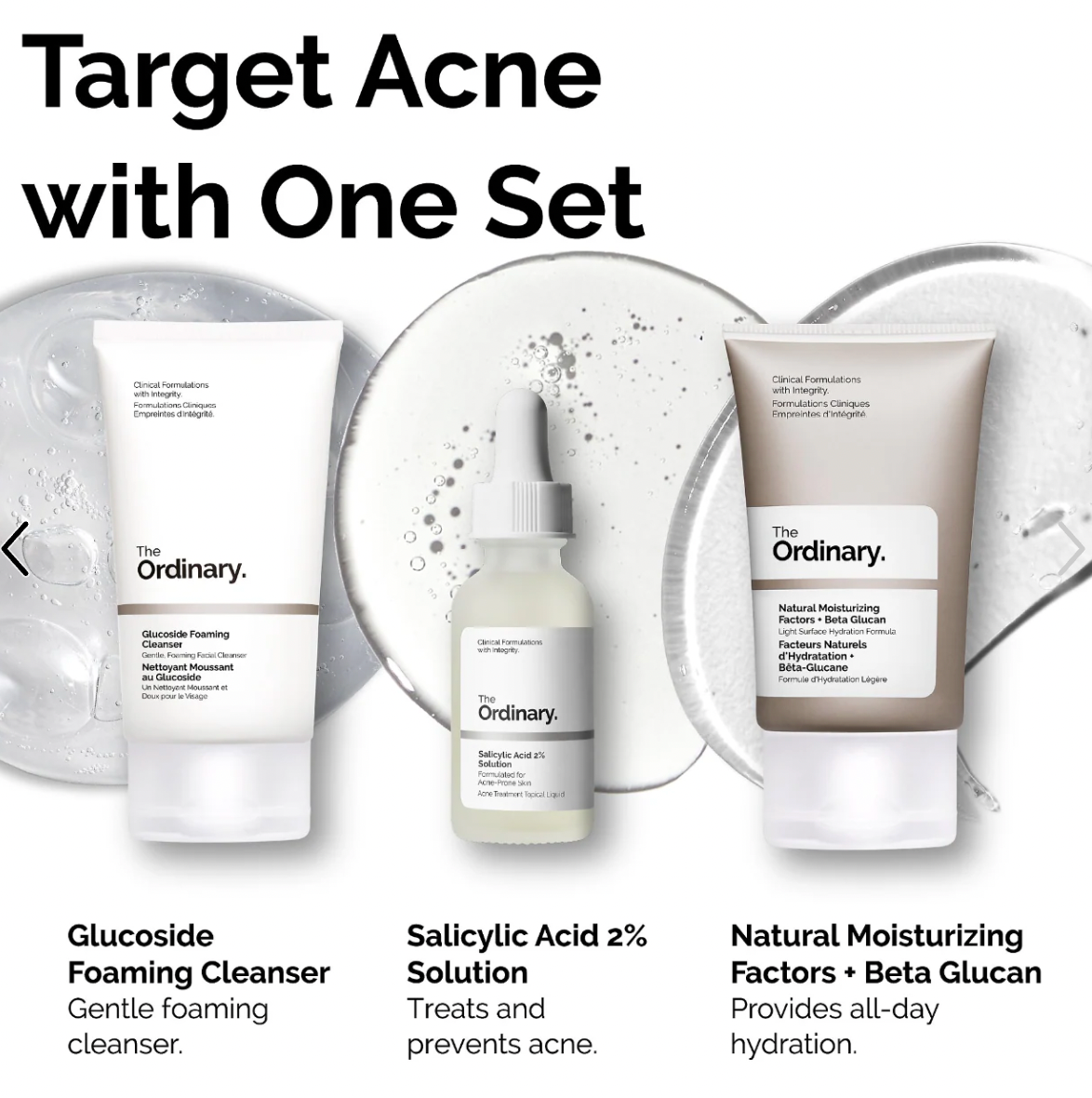 Este set para el acné de The Ordinary ofrece un régimen integral diseñado específicamente para pieles propensas a imperfecciones. Formulado con ácido salicílico, ayuda a exfoliar suavemente, reducir el exceso de grasa y disminuir visiblemente las marcas de acné, promoviendo una piel más clara y uniforme. Ideal para quienes buscan un cuidado efectivo y respaldado por evidencia científica.