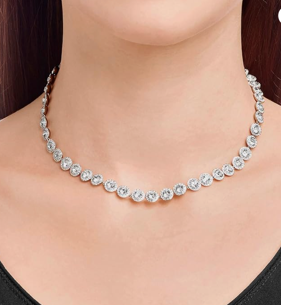 Este elegante collar chapado en rodio de la colección Swarovski Una Angelic destaca por la precisión y calidad de sus cristales Swarovski transparentes, que aportan un brillo sofisticado y duradero. Su diseño atemporal se adapta a cualquier ocasión, mientras que el cierre seguro y el extensor incorporado permiten un ajuste personalizado para mayor comodidad. Perfecto para quienes buscan un accesorio delicado que conserve su esplendor con un cuidado adecuado.